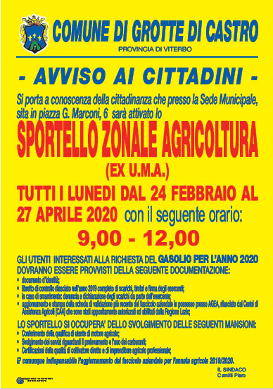 21-02-2020 Avviso - Sportello zonale agricultura (ex U.M.A.)